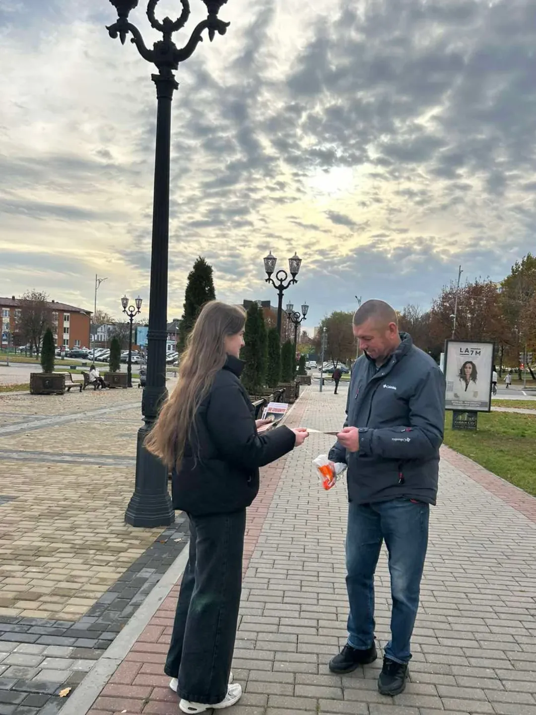 Совместно с заведующей отделом общественного здоровья и социально-гигиенического мониторинга Лидского зонального центра гигиены и эпидемиологии О.Э.Ясюкайть ребята раздали букеты с информацией о вреде никотиновой зависимости и о профилактике онкозаболеваний.