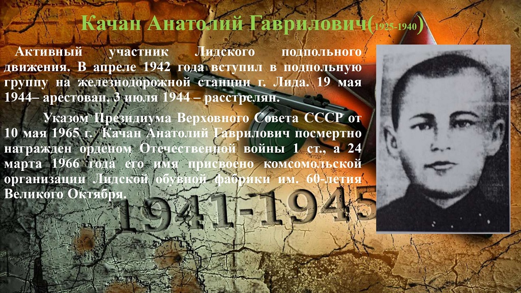 В рамках проекта «Нам жить и помнить завещалось», посвященного 80-й годовщине Победы советского народа в Великой Отечественной войне. Памятники Лидчины.