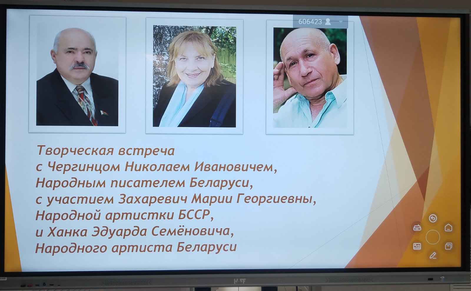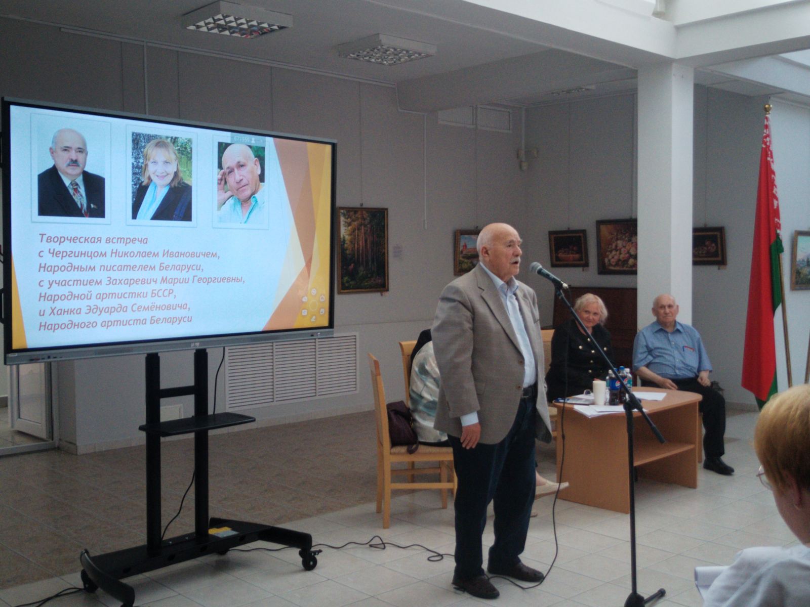 В рамках XXXII Дня Белорусской письменности состоялась творческая встреча представителей трудовых коллективов с народным писателем Беларуси М. Чергинцом с участием народных артистов Беларуси М. Зазаревич и Э. Ханка.