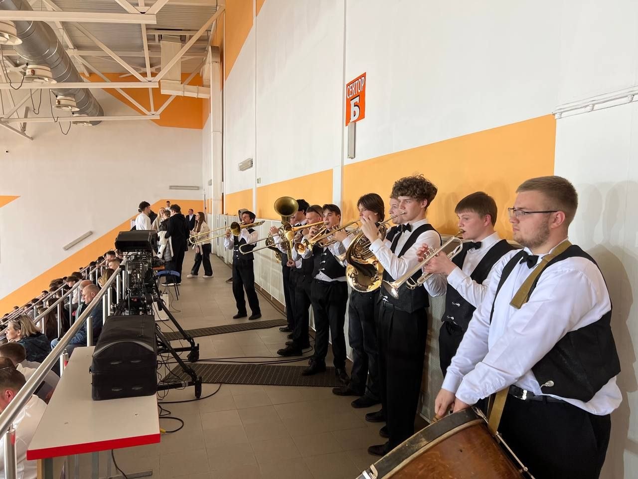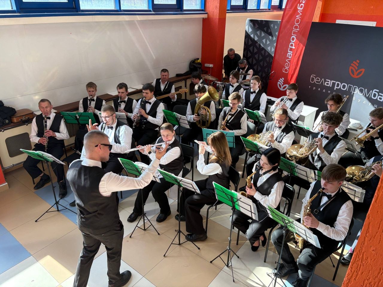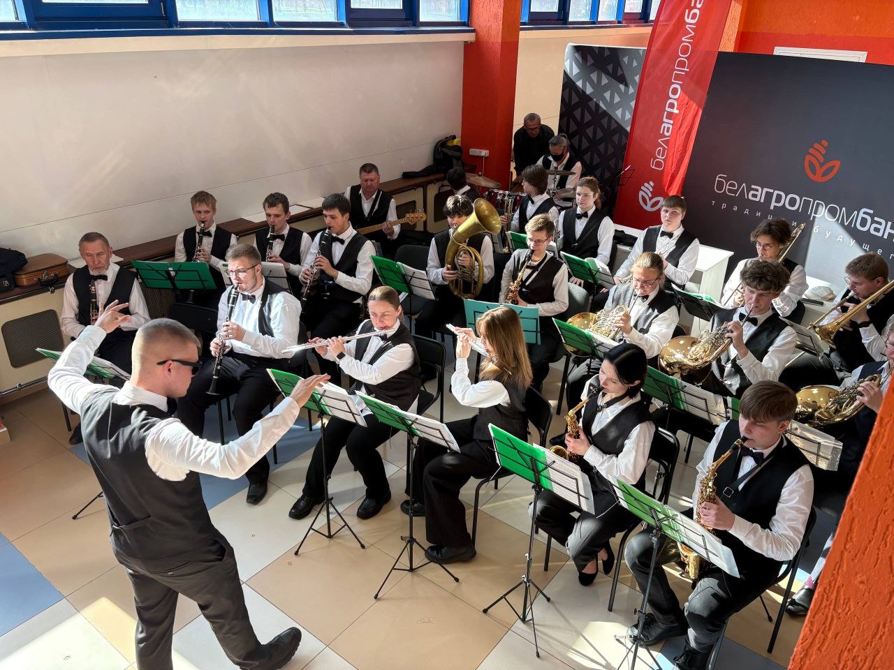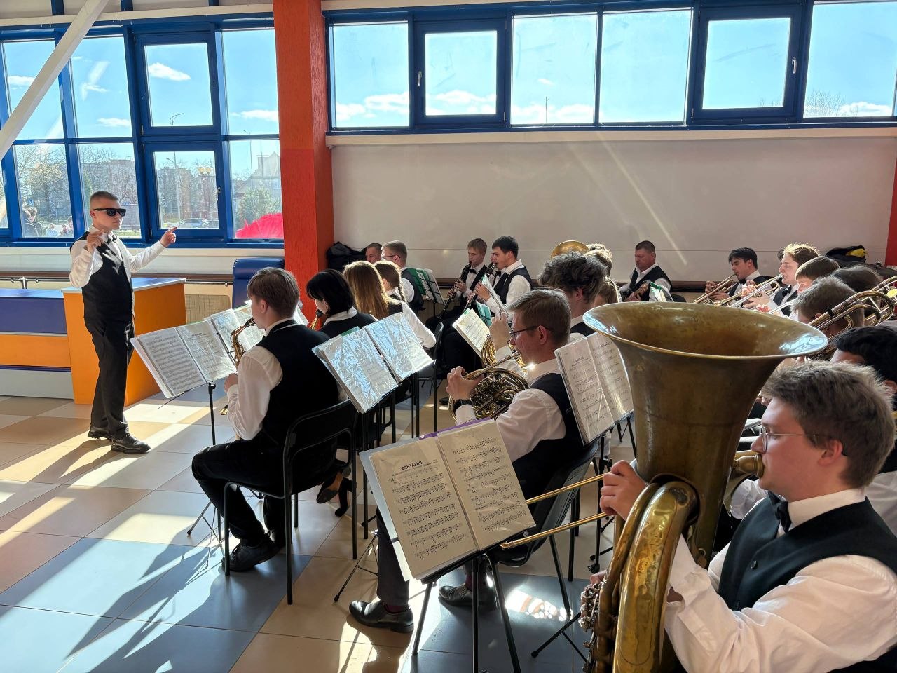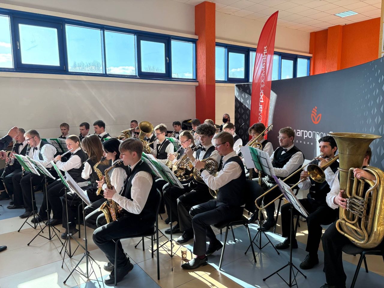 Праздничную атмосферу создавал наш замечательный коллектив-‘народный» духовой оркестр, где талантливые учащиеся вместе с преподавателями взаимодействуют в едином творческом процессе под управлением  известного дирижера -Виктора Бельчицкого.