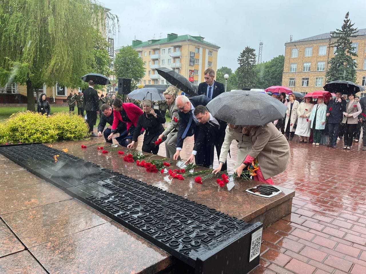 У пачатку візіту ў горад Баранавічы адбылася ўрачыстая цырымонія ўскладання кветак да манумента «Вызваленне».