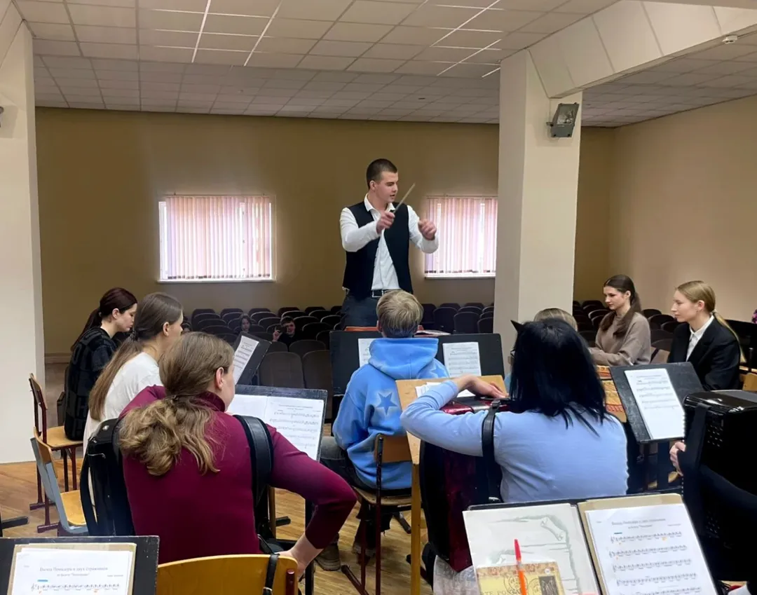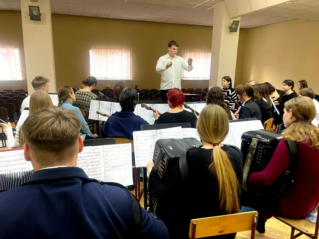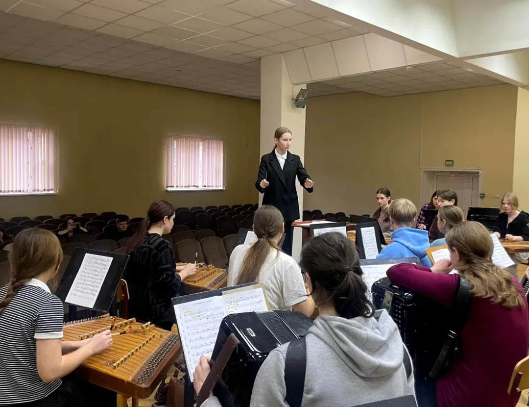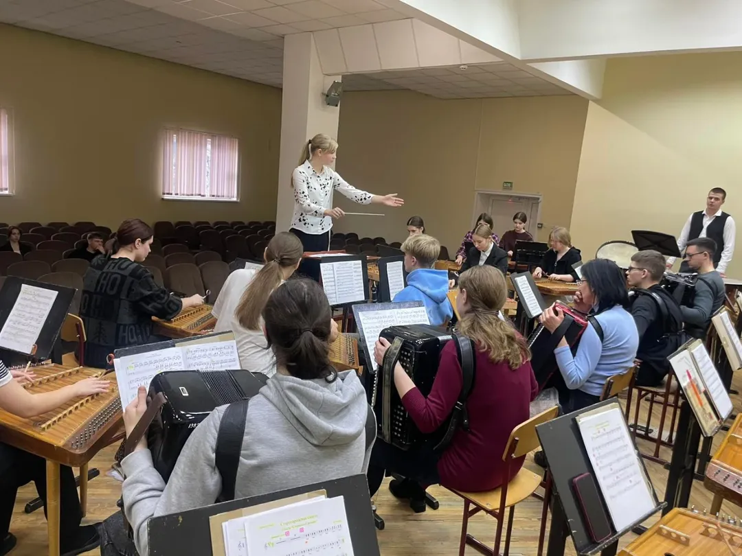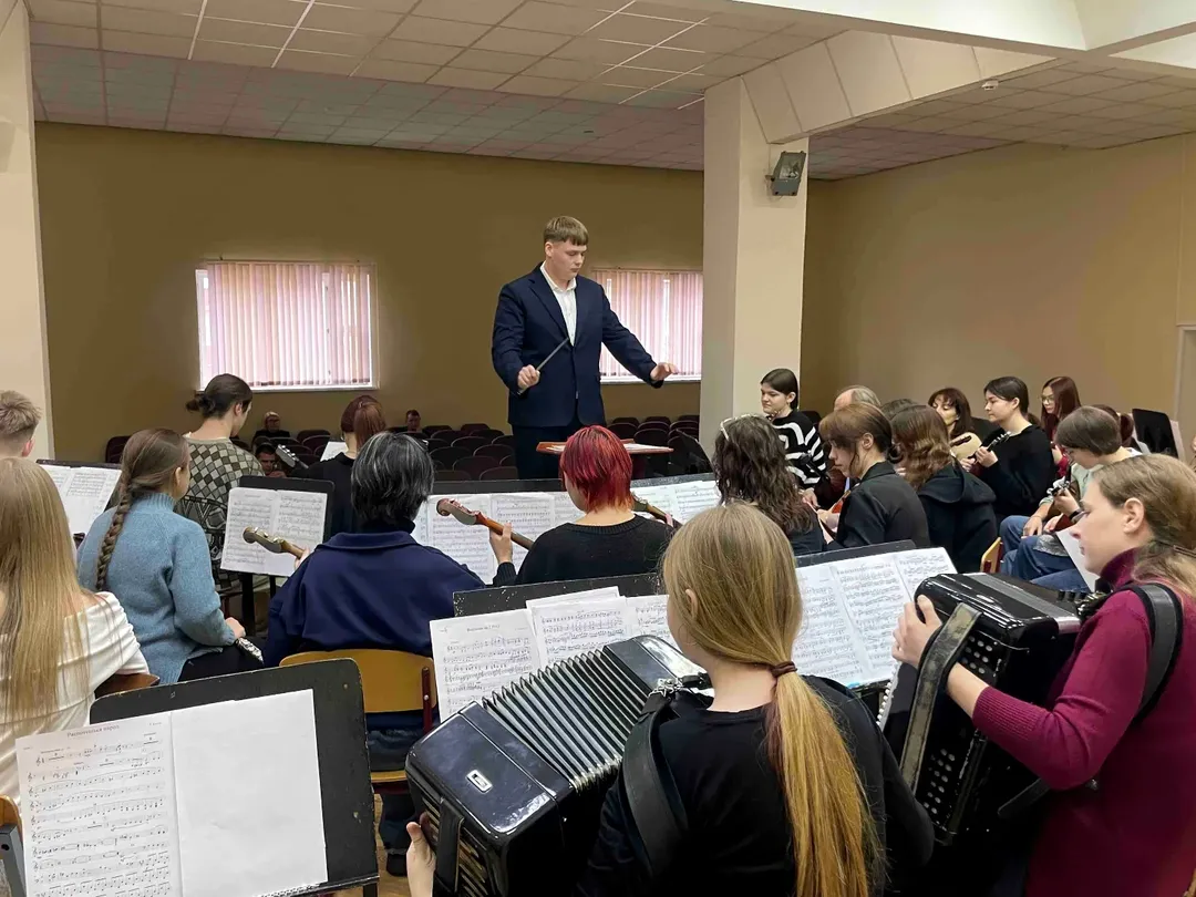 Сегодня в центре внимания — учащиеся 4 курса ЦК «Струнные народные инструменты» и ЦК «Баян–аккордеон», которые работали сразу с двумя коллективами: оркестром русских народных инструментов и оркестром белорусских народных инструментов.