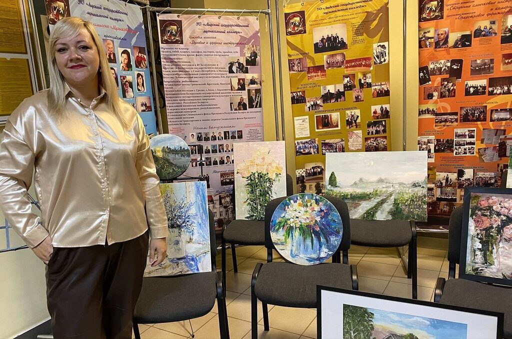 03.10.2024 г. В колледже состоялось открытие выставки картин выпускницы Елены Санько, которая приурочена к двум профессиональным праздникам Дню учителя и Дню работника культуры