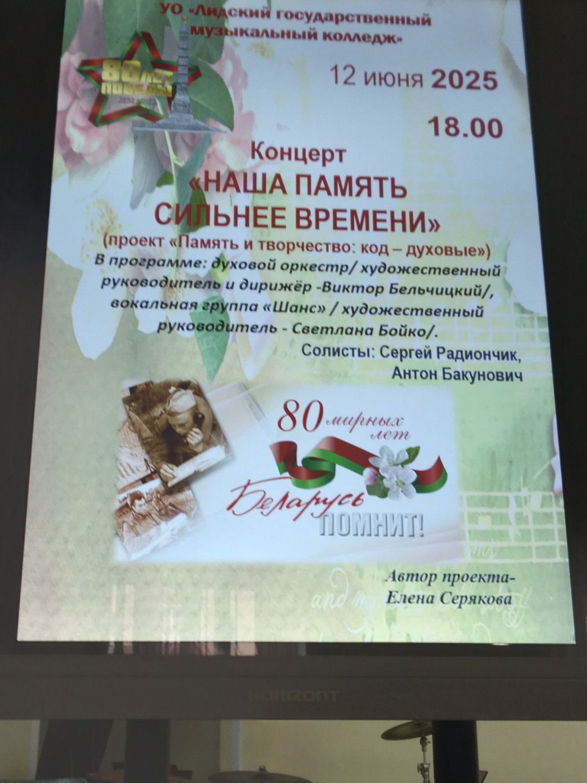 12 мая в День России состоялся очередной концерт проекта «Наша память сильнее времени», посвященный 80-ой годовщине Великой Победы.