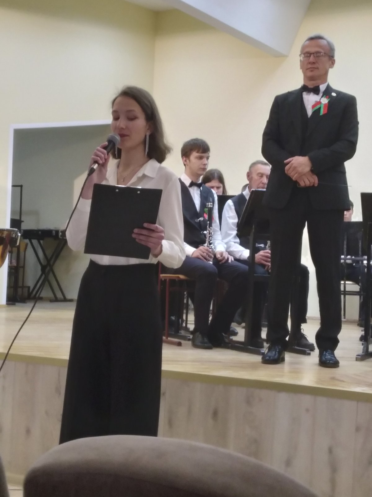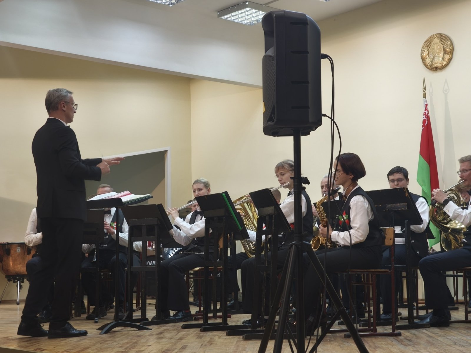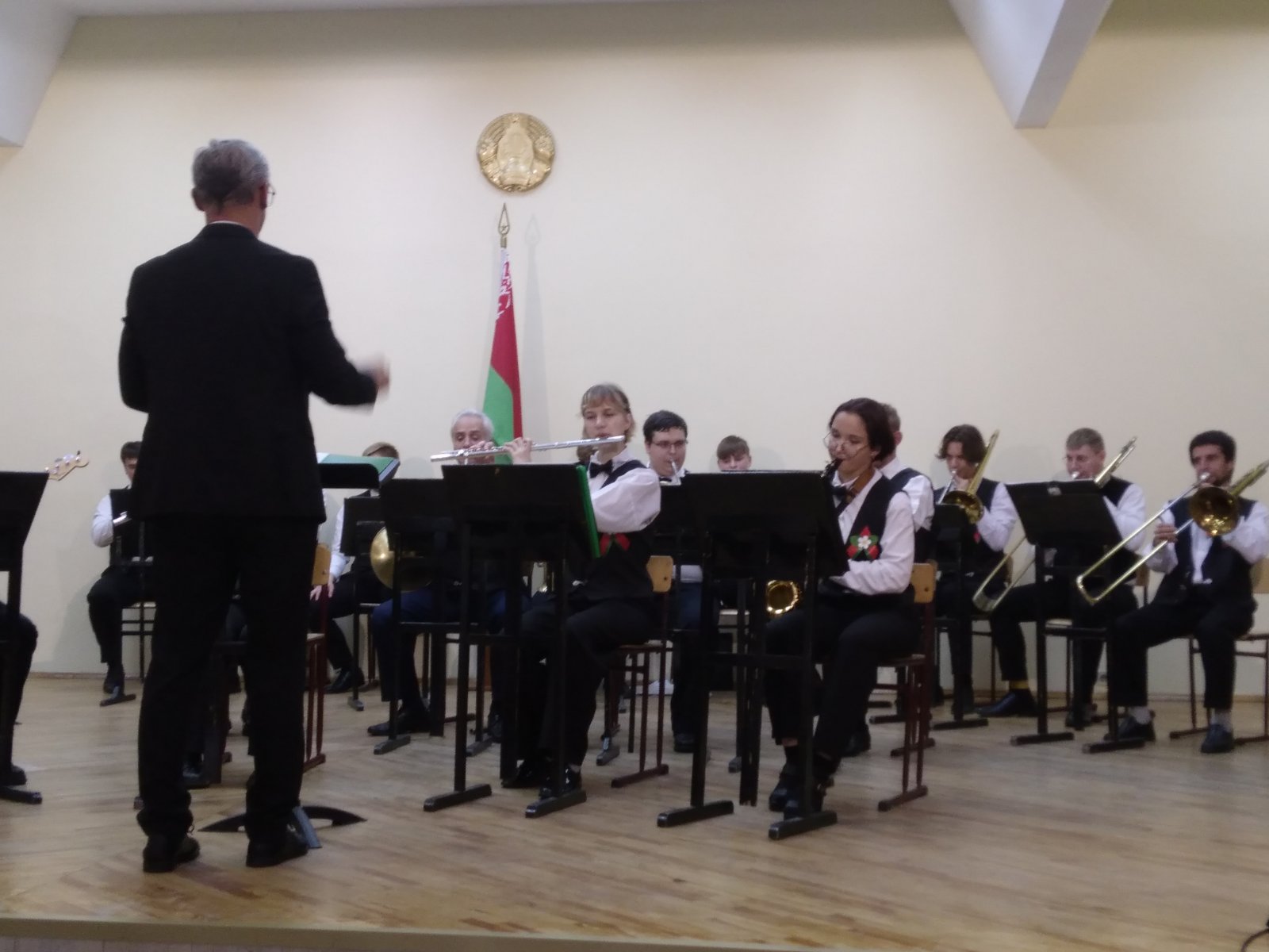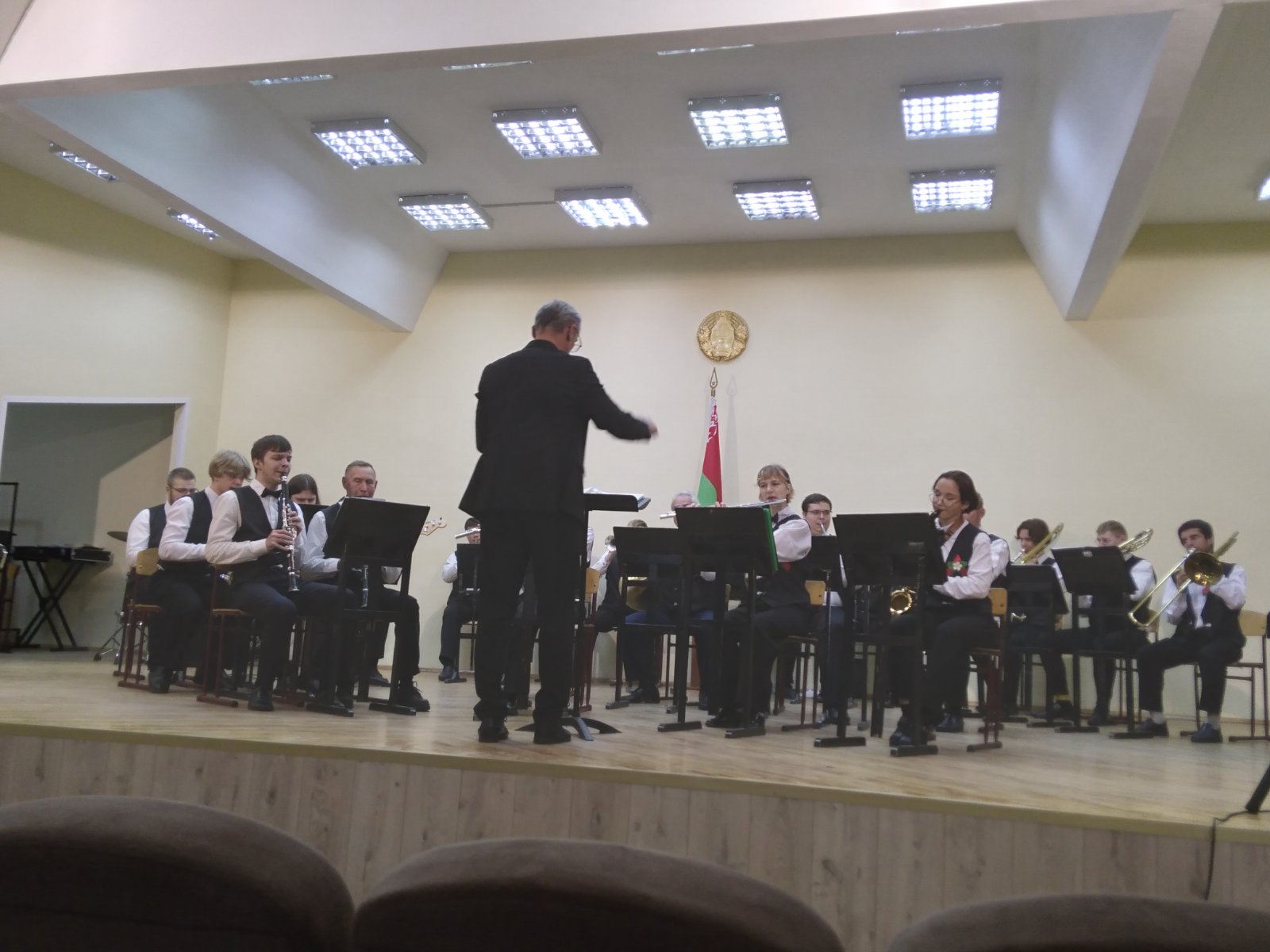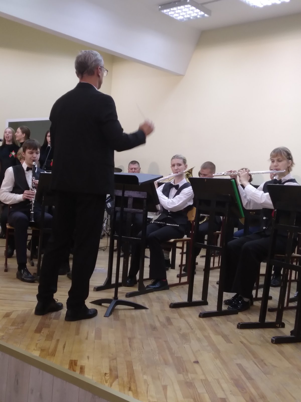 В исполнении духового оркестра, вокальной группы «Шанс», солистов -преподавателей Сергея Родиончика и Антона Бакуновича прозвучали композиции и песни военных лет, музыка к кинофильмам, сочинения советских композиторов, современных российских и белорусских авторов.
