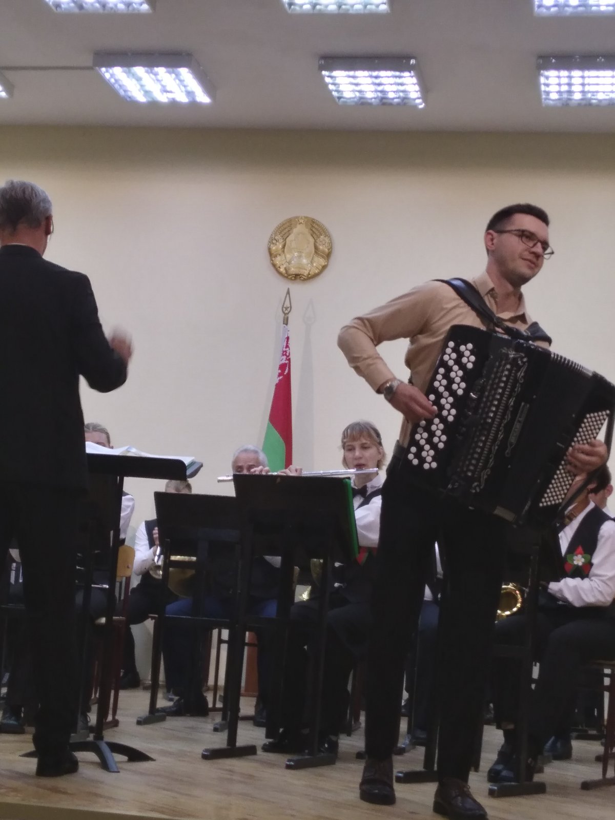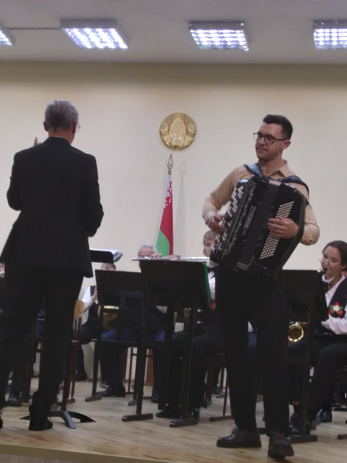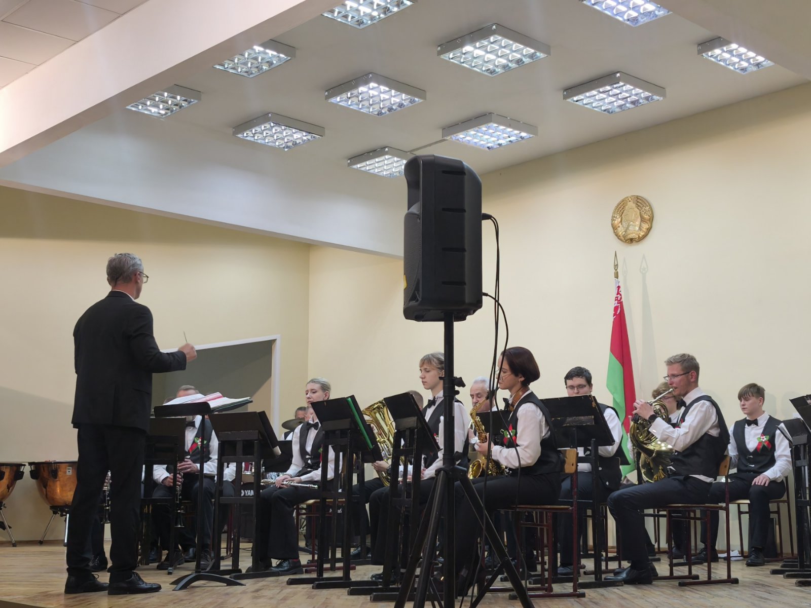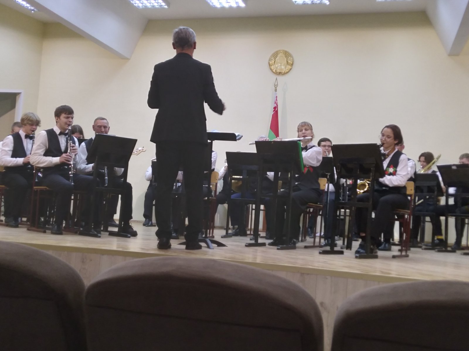 В исполнении духового оркестра, вокальной группы «Шанс», солистов -преподавателей Сергея Родиончика и Антона Бакуновича прозвучали композиции и песни военных лет, музыка к кинофильмам, сочинения советских композиторов, современных российских и белорусских авторов.