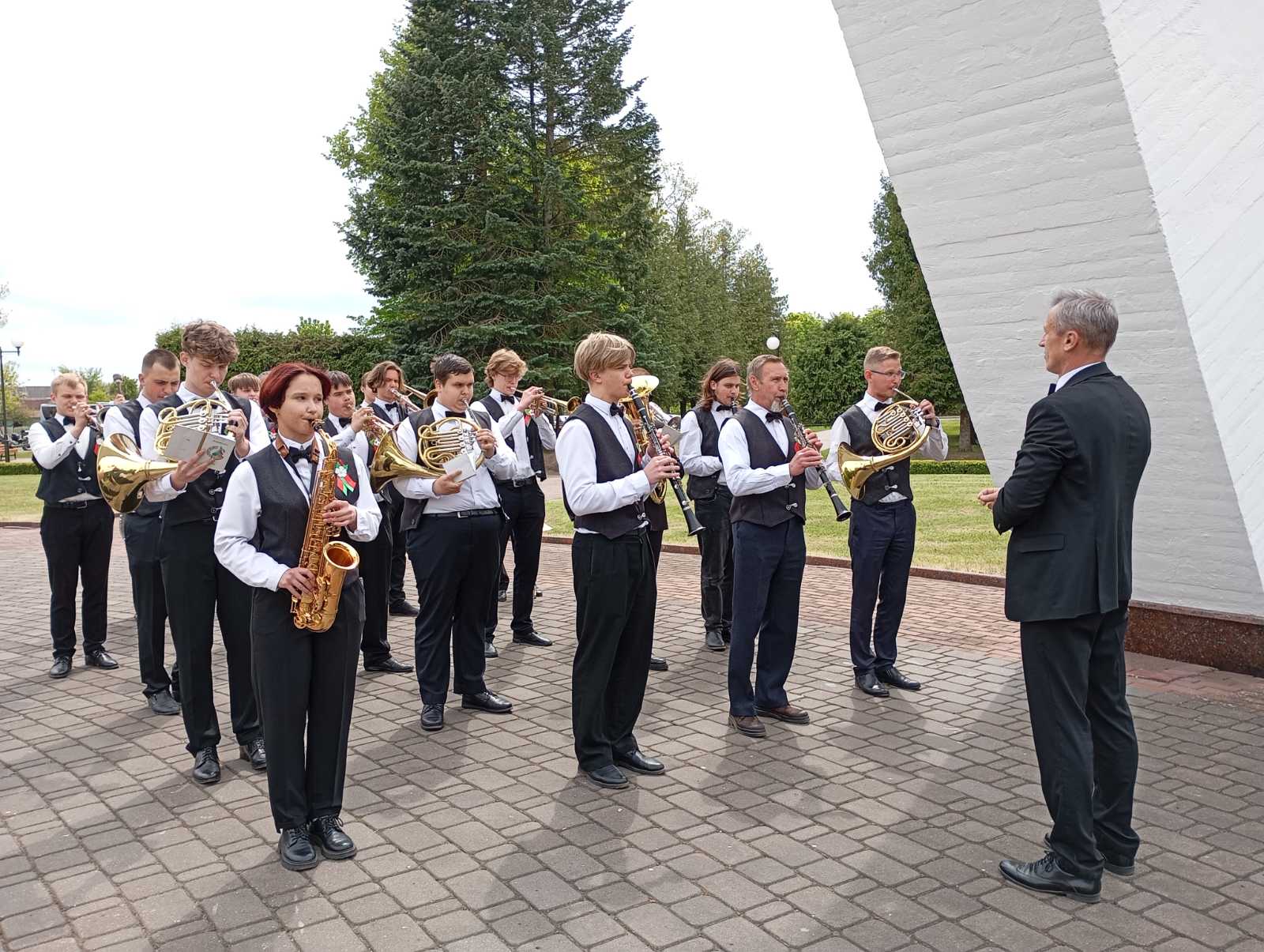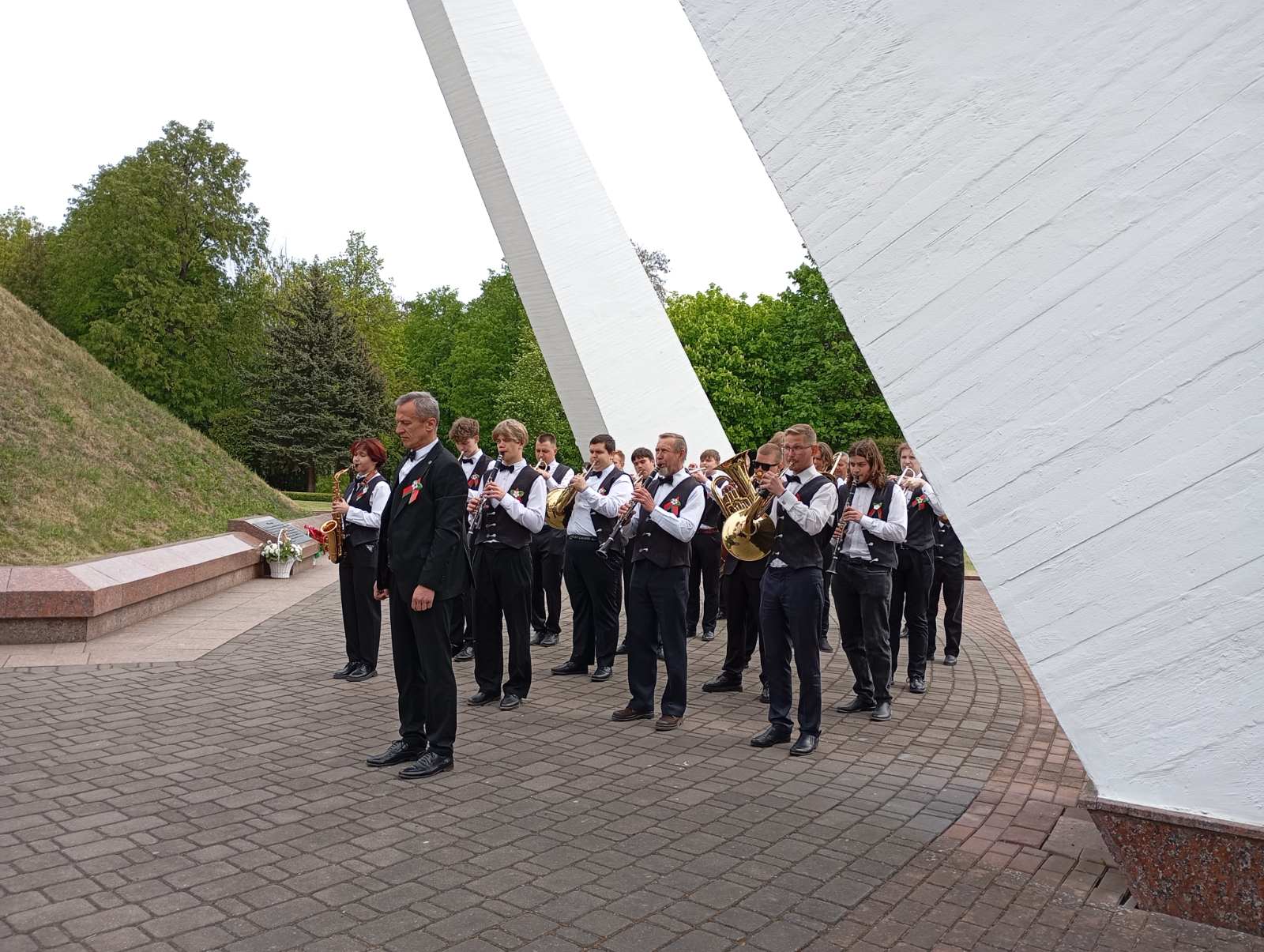 Духовой оркестр колледжа принял участие с музыкальным сопровождением на церемонии возложения цветов к Кургану Бессмертия в рамках проведения в г.Лида XXX научно- практической конференции «Комплексная защита информации».