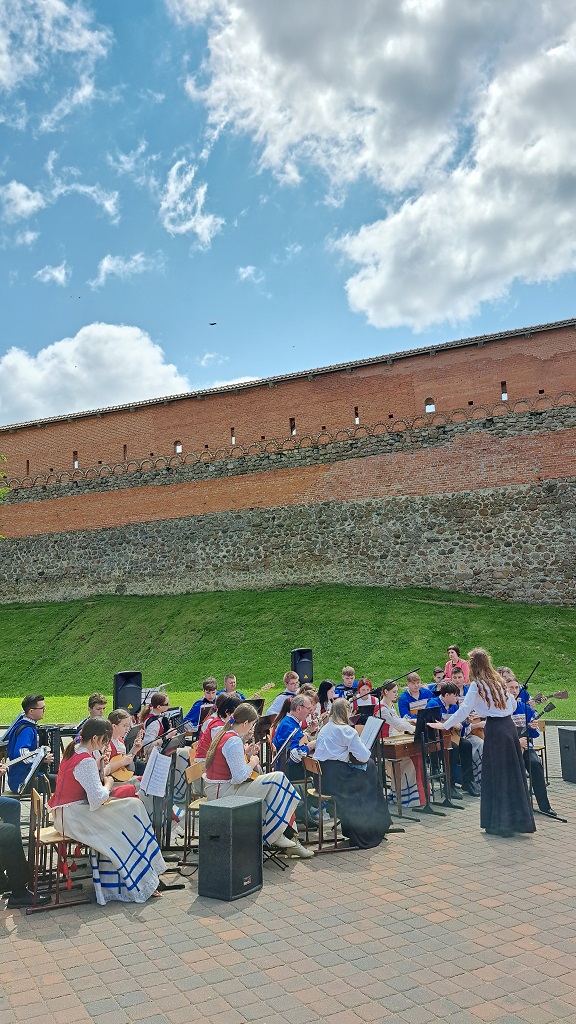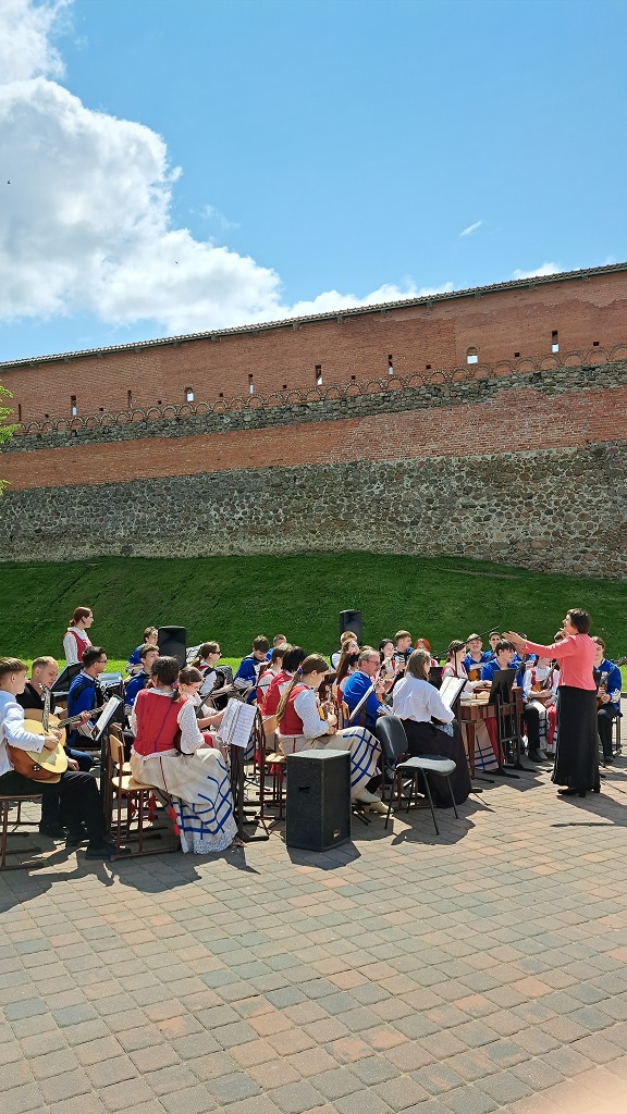 В рамках культурно-туристического проекта «Замковый гостинец» Заслуженный любительский коллектив Республики Беларусь народный оркестр русских народных инструментов представил концертную программу «Нам жить и помнить завещалось» для гостей и жителей города Лиды.