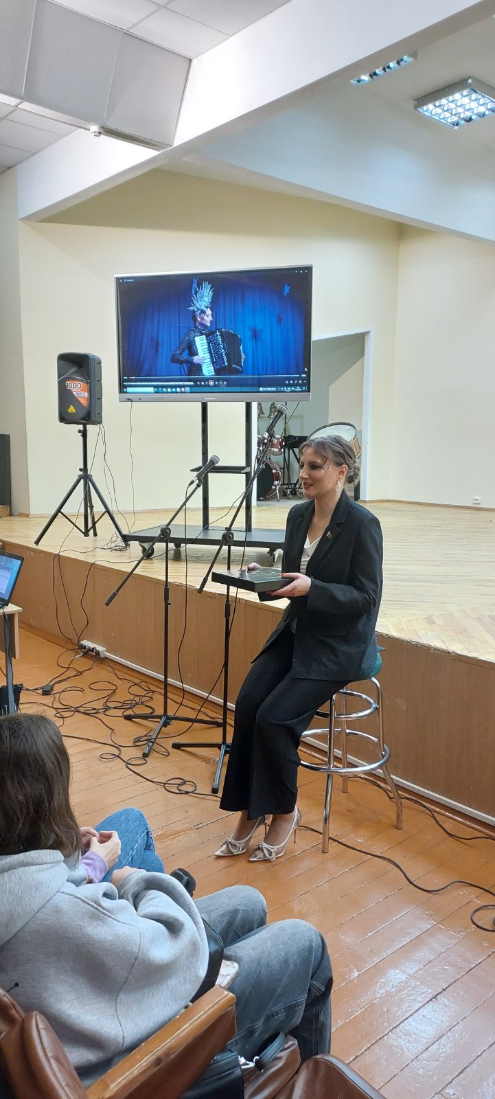 » Гераненская детская школа искусств», Депутатом Гродненского областного Совета депутатов, Членом Молодежного парламента при Национальном собрании Республики Беларусь ll созыва, автором сольного проекта » Девушка с аккордеоном» Екатериной Ивановной Борисовой, в рамках проекта «Мои таланты раскрыл колледж». Во встрече приняли участие ученики образцового ансамбля танца