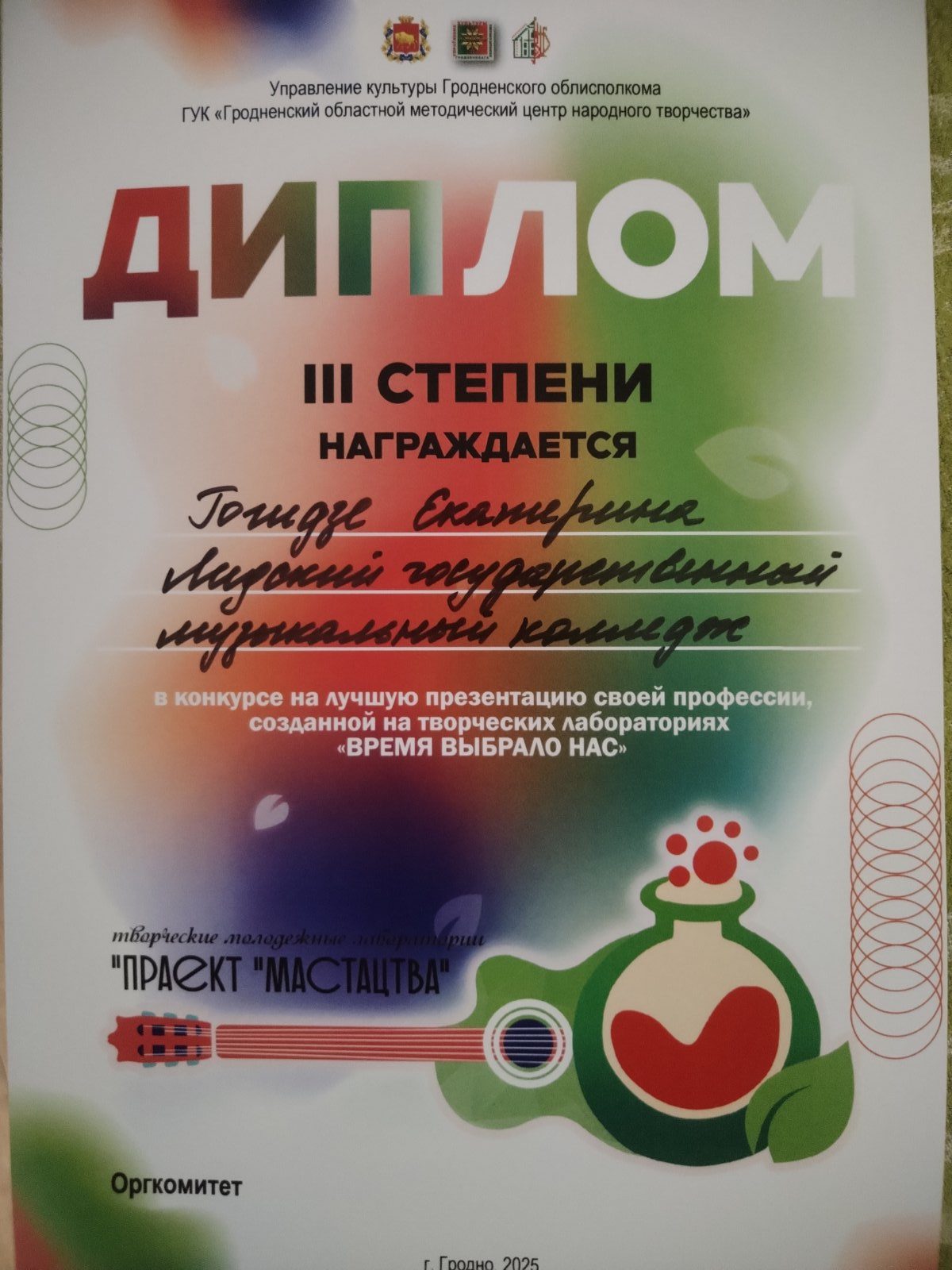 УО «Лидский государственный музыкальный колледж» представляет команда «Гармония» из числа молодых специалистов 2025 , а также закрепившихся молодых специалистов в возрасте до 31 года. В первый день КультСлёта на Августовском канале участники команды приняли участие в конкурсе-визитке «Культурный Код», а также в конкурсе-марафоне песен у костра «Музыкальная бессонница».