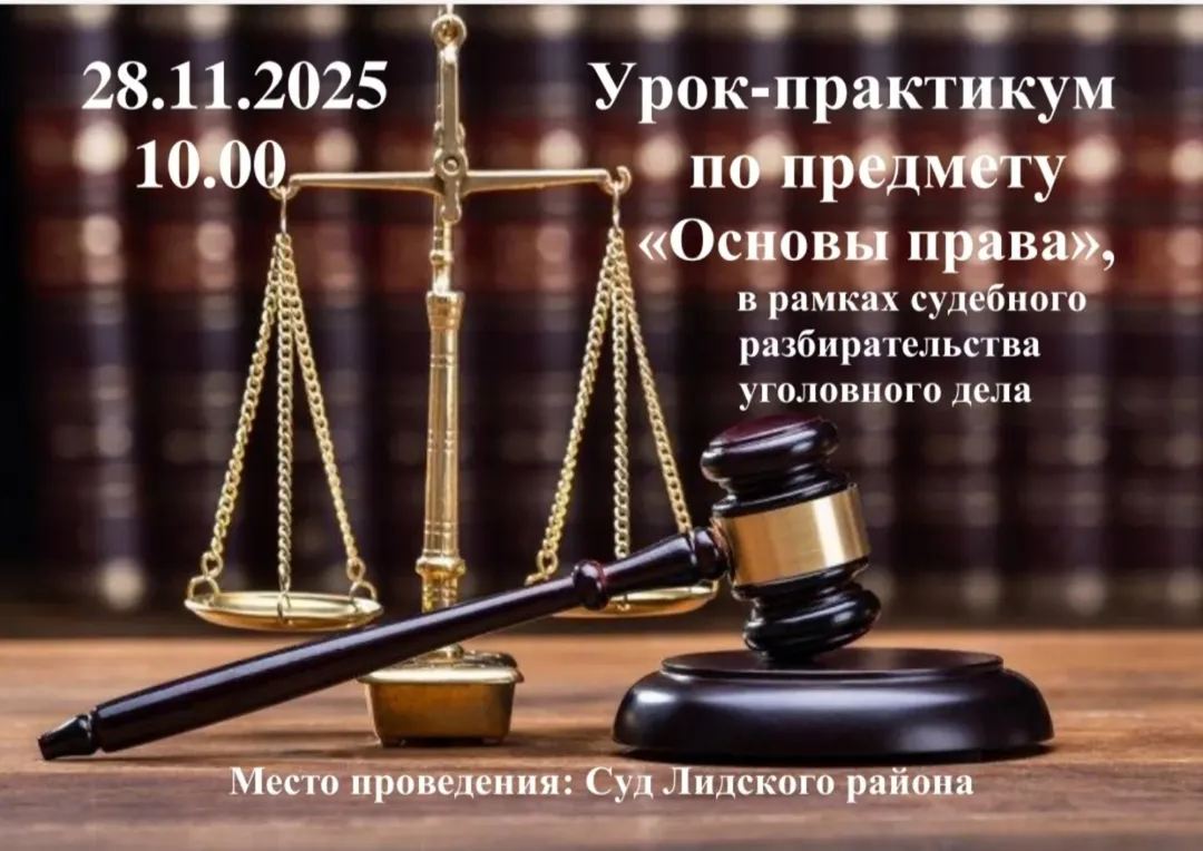 28.11.2025 в рамках проведения недели ЦК «Общеобразовательные дисциплины» учащиеся 4 курса и преподаватели колледжа приняли участие в уроке-практикуме по предмету «Основы права» в рамках судебного разбирательства уголовного дела в зале заседания Суда Лидского района.
