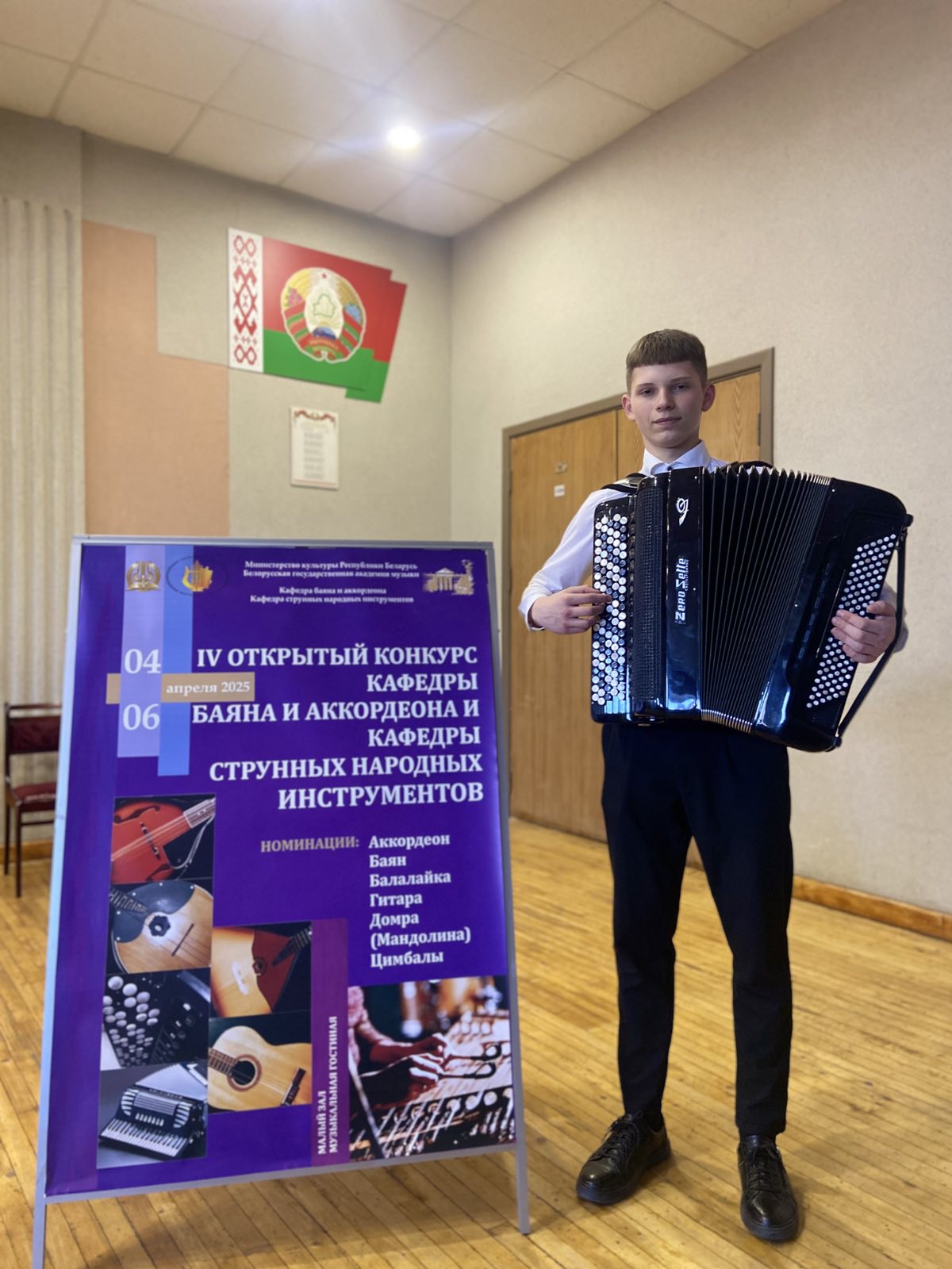 В УО «Белорусская государственная академия музыки» прошел IV конкурс кафедры баяна и аккордеона. Учащийся 2 курса Кетрис Егор стал Лауреатом 2 степени. Класс преподавателя Руто Ларисы Вдадимировны