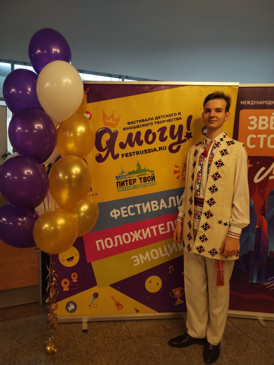 Виткевича Романа (преподаватель Хорошилова Тамара Петровна) с дипломом лауреата І степени 45-го международного фестиваля конкурса “Звезды столицы” (г.Москва, Российская Федерация), в рамках творческого проекта “Я могу”