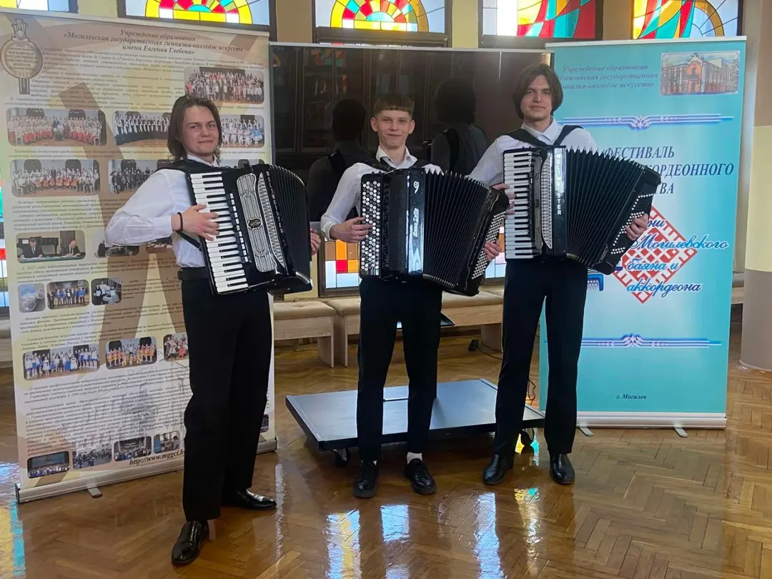 Учащиеся 3 курса ЦК «Баян-аккордеон» Лидского государственного музыкального колледжа Кетрис Егор, Войцеховский Матвей, Фурс Иван...