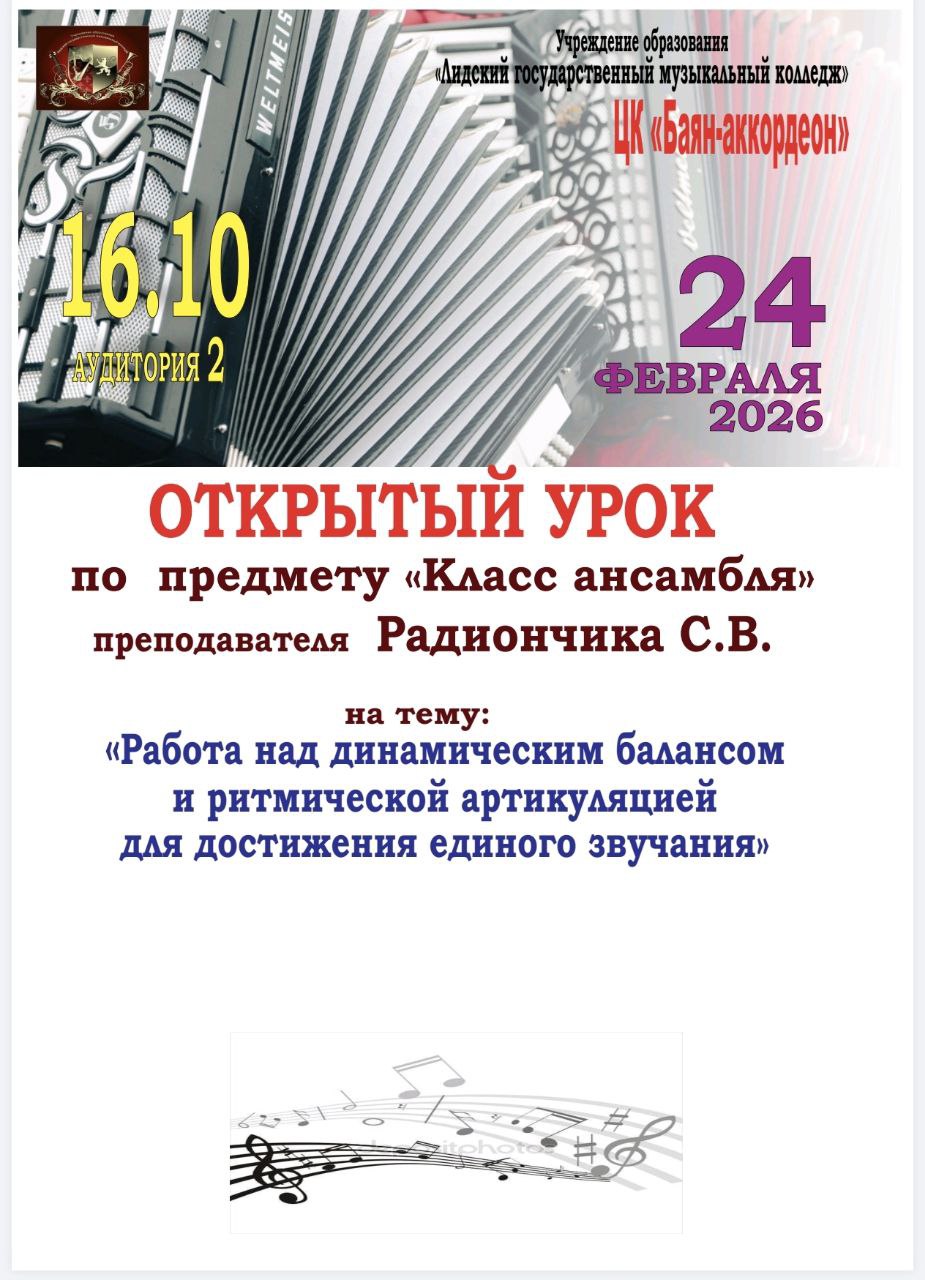 24 февраля прошел открытый урок преподавателя Радиончика Сергея Васильевича на тему :» Работа над динамическим...