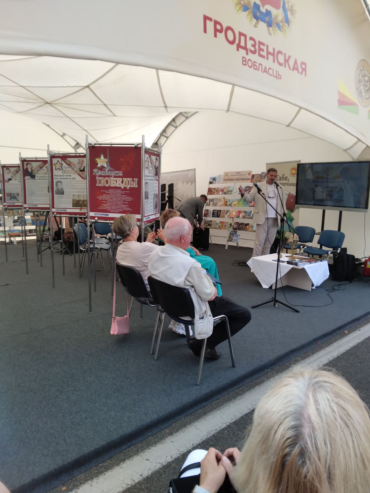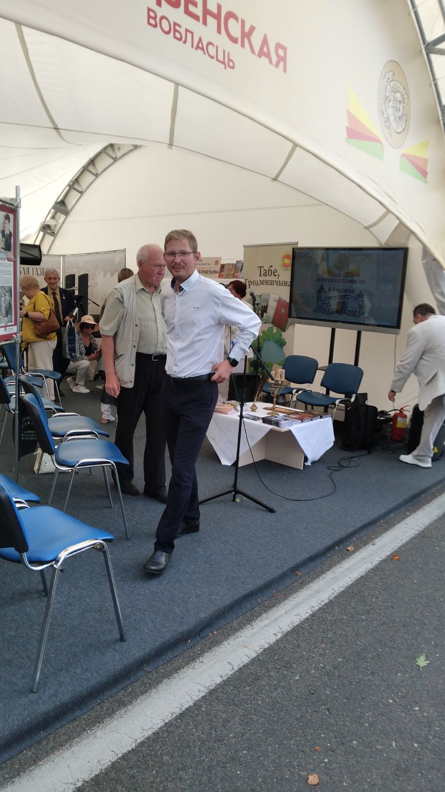 XXXII День Белорусской письменности в Лиде. Павильон «Писатели Гродненшины» с поэтическим поздравлением и приветом гостям праздника при музыкально-техническом сопровождении Лидского государственного музыкального колледжа.